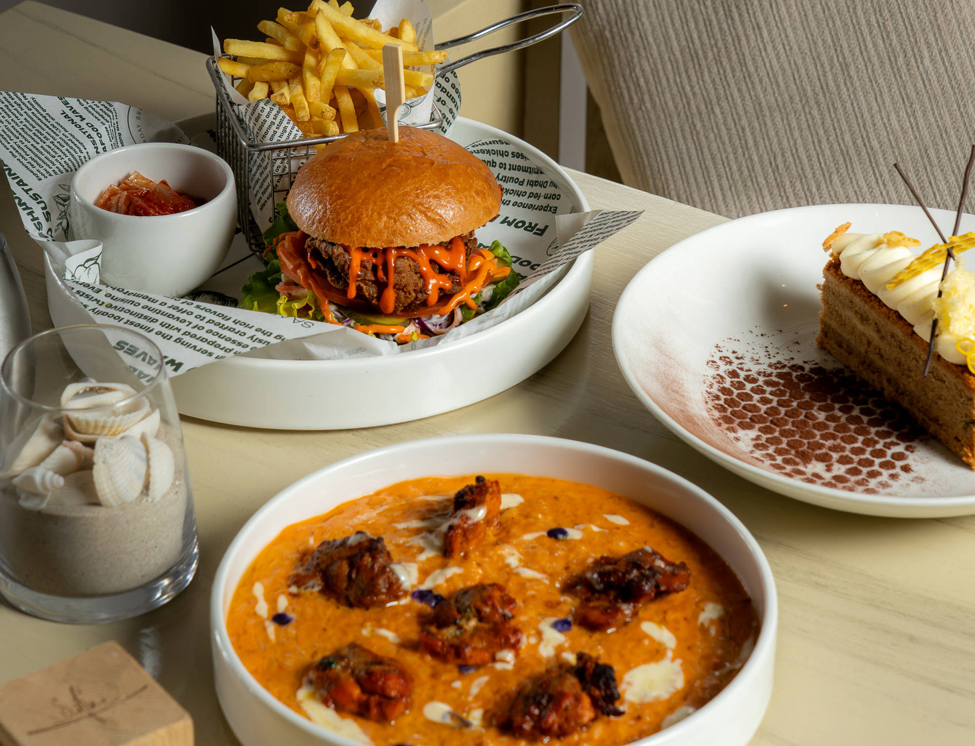 Discover a thoughtfully crafted menu by Jaswant Panwar, where fresh flavours meet global inspiration. From light starters to comforting mains and delicate desserts, each dish complements long, sun-soaked days by the sea—available throughout Saadiyat Beach Club.