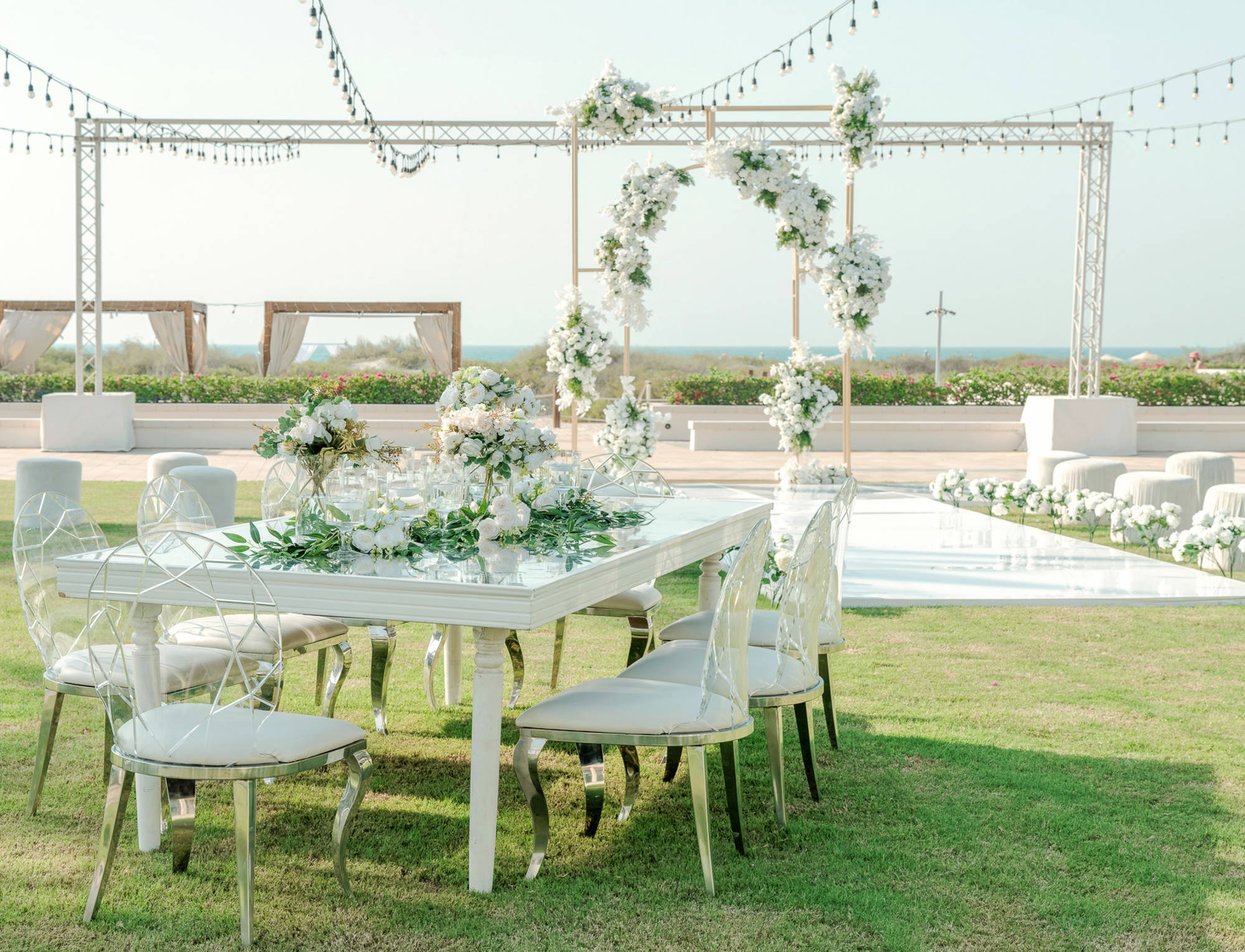 Discover the art of a luxury beach wedding in Abu Dhabi—effortlessly elegant, fully bespoke, and set against the stunning Arabian Gulf. At our exclusive beach club, we bring your celebration to life with tailored service, refined details, and a setting that captures the beauty of the moment.